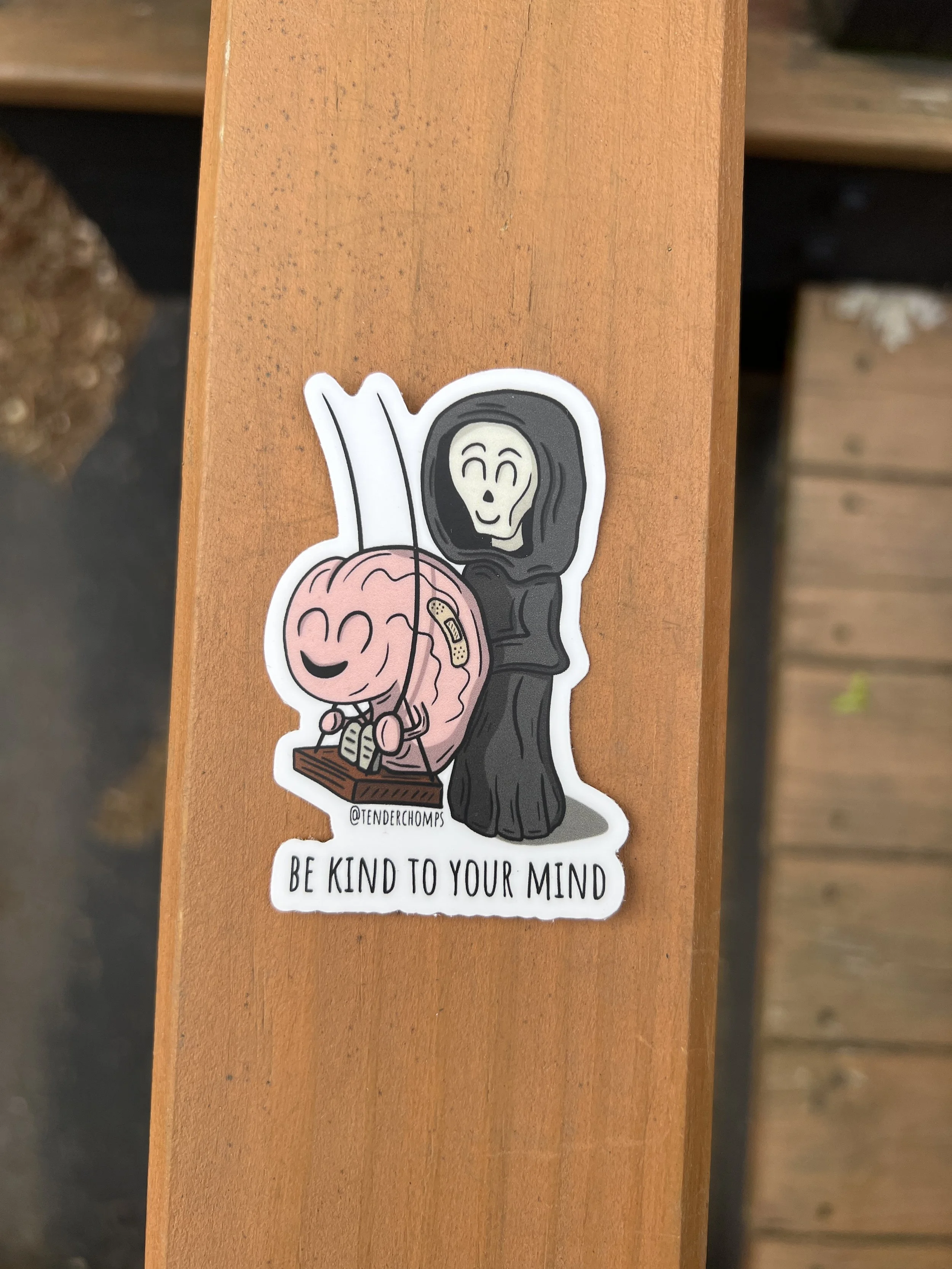 Categories: All Apparel Stickers Greeting Cards Prints Drinkware Originals All / Be Kind to Your Mind Grim Reaper and Brain Sticker $3.00 Overthinking in Progress Mushroom Sticker $3.00 Dogs are Grounding Grim Reaper Sticker $3.00 My Therapist Knows All About You Anya Sticker $3.00 We'll Carry On Marching Skeleton Sticker $3.00 Plant Lady Sticker $3.00 Happy Grim Reaper Sticker $3.00 Encouraging Ghost Sticker $3.00 Three Cheers Couple Sticker $3.00 Sugar We're Going Down Couple Sticker $3.00